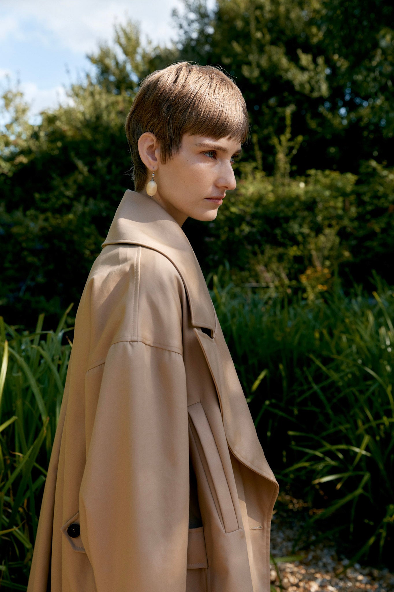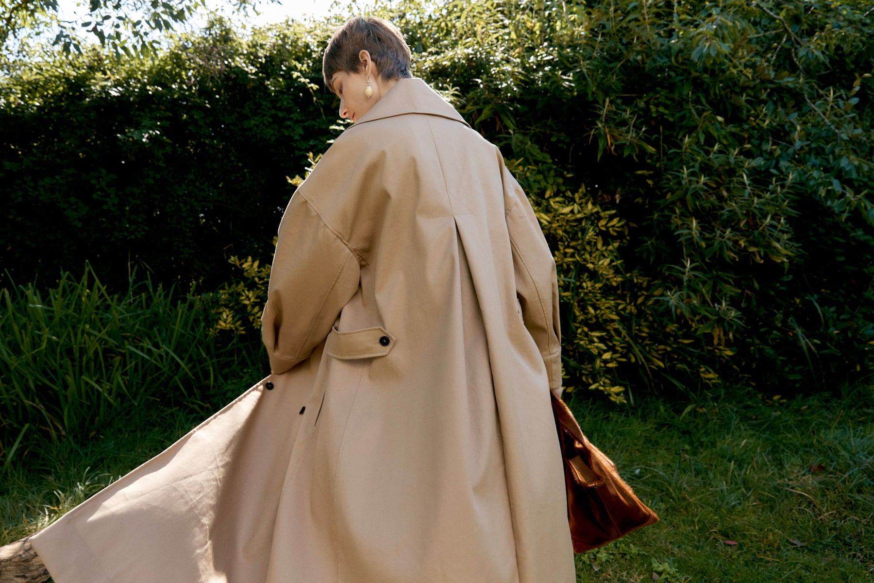 INTRODUCING OUR NEW MAC FOR THE SEASON, CRAFTED FROM A BRITISH COTTON GABARDINE. THIS DOUBLE-BREASTED COAT FEATURES HORN BUTTONED WAIST TABS THAT SUBTLY DEFINE ITS OVERSIZED AND RELAXED SHAPE. DEEP CUFFS, A BACK PLEAT, FRONT JET POCKETS, AND SIDE SEAM POCKETS ENHANCE BOTH ITS FUNCTIONALITY AND STYLE.