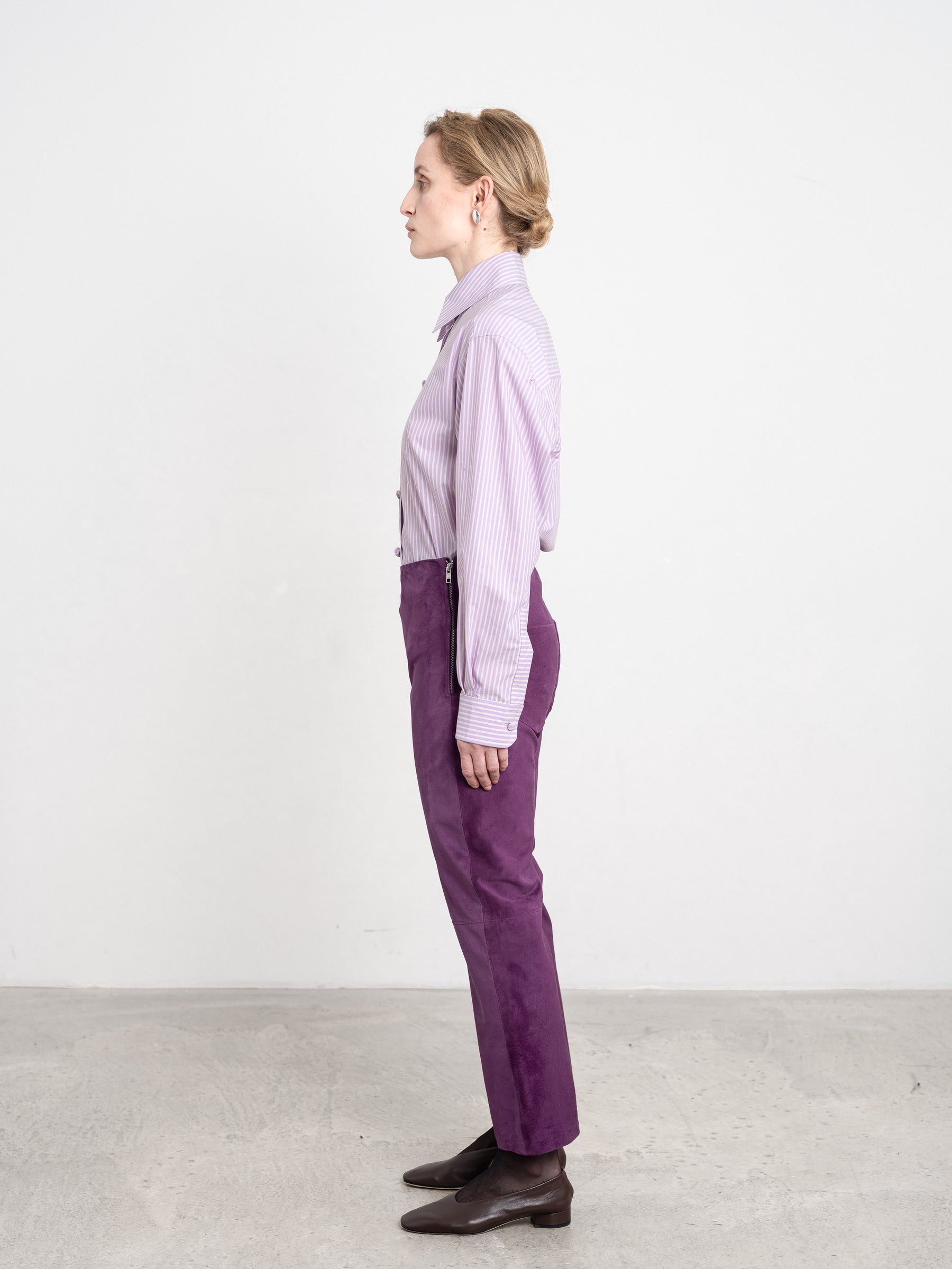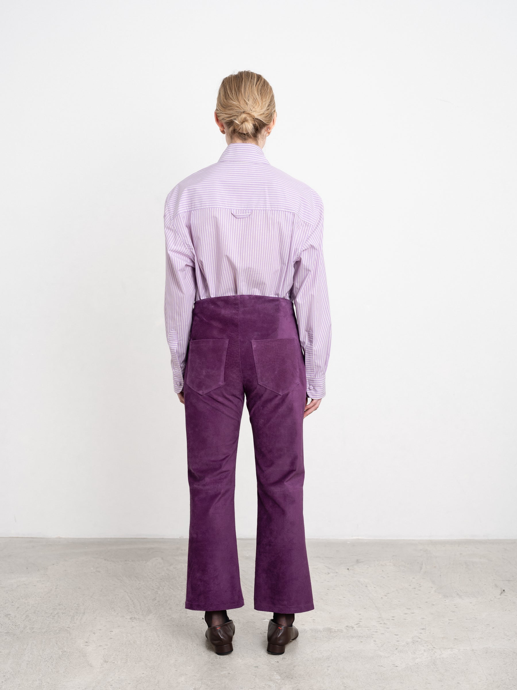 NEW FOR AW25, THESE TIMELESS TROUSERS ARE CRAFTED FROM SOFT AND SUPPLE SUEDE THAT IS FLEXIBLE AND MOULDS TO THE BODY. CLASSIC IN DESIGN, THESE MID-RISE TROUSERS HAVE SLIM LEGS THAT KICK OUT TO A SLIGHT FLARED HEM. FINISHED WITH A CONCEALED SIDE SEAM ZIP AND TWO BACK PATCH POCKETS.