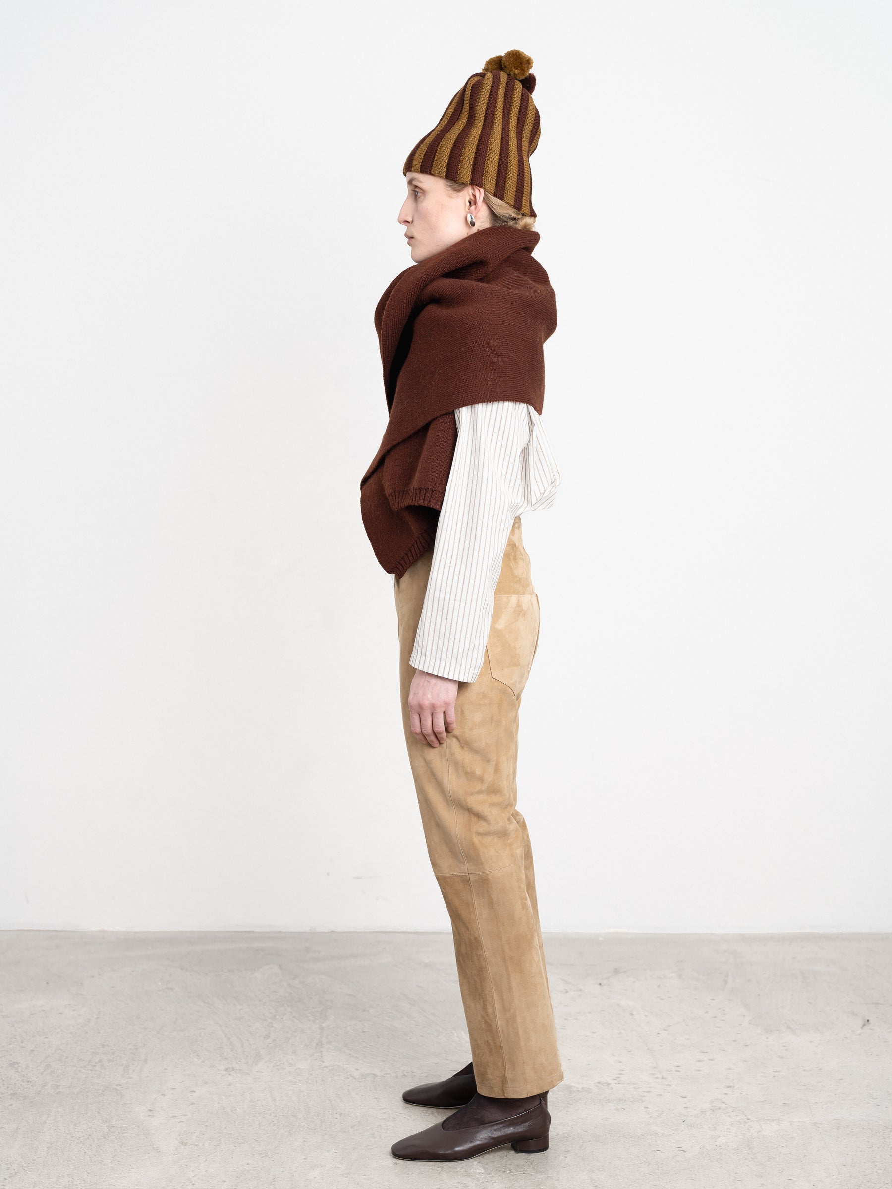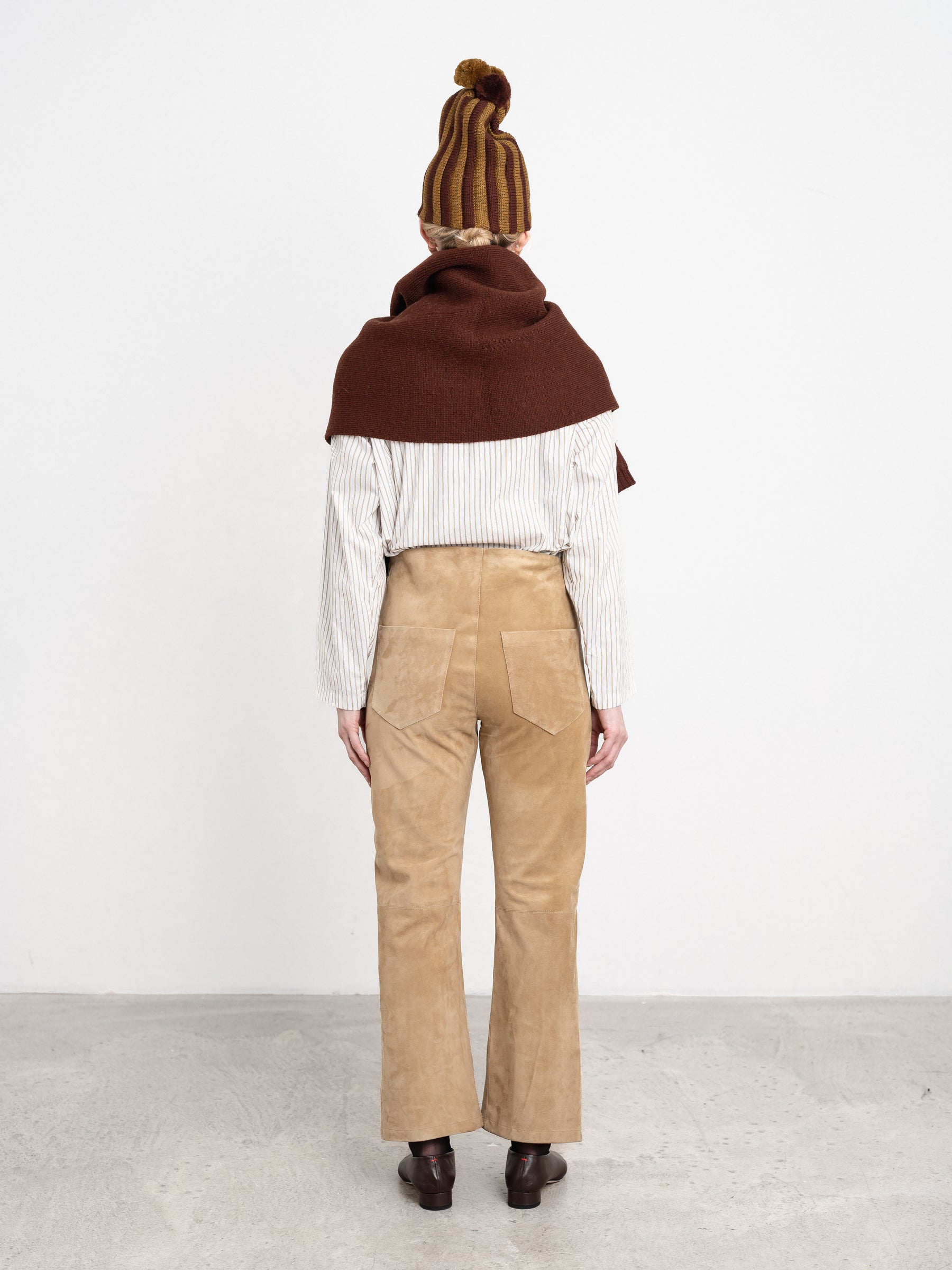NEW FOR AW25, THESE TIMELESS TROUSERS ARE CRAFTED FROM SOFT AND SUPPLE SUEDE THAT IS FLEXIBLE AND MOULDS TO THE BODY. CLASSIC IN DESIGN, THESE MID-RISE TROUSERS HAVE SLIM LEGS THAT KICK OUT TO A SLIGHT FLARED HEM. FINISHED WITH A CONCEALED SIDE SEAM ZIP AND TWO BACK PATCH POCKETS.