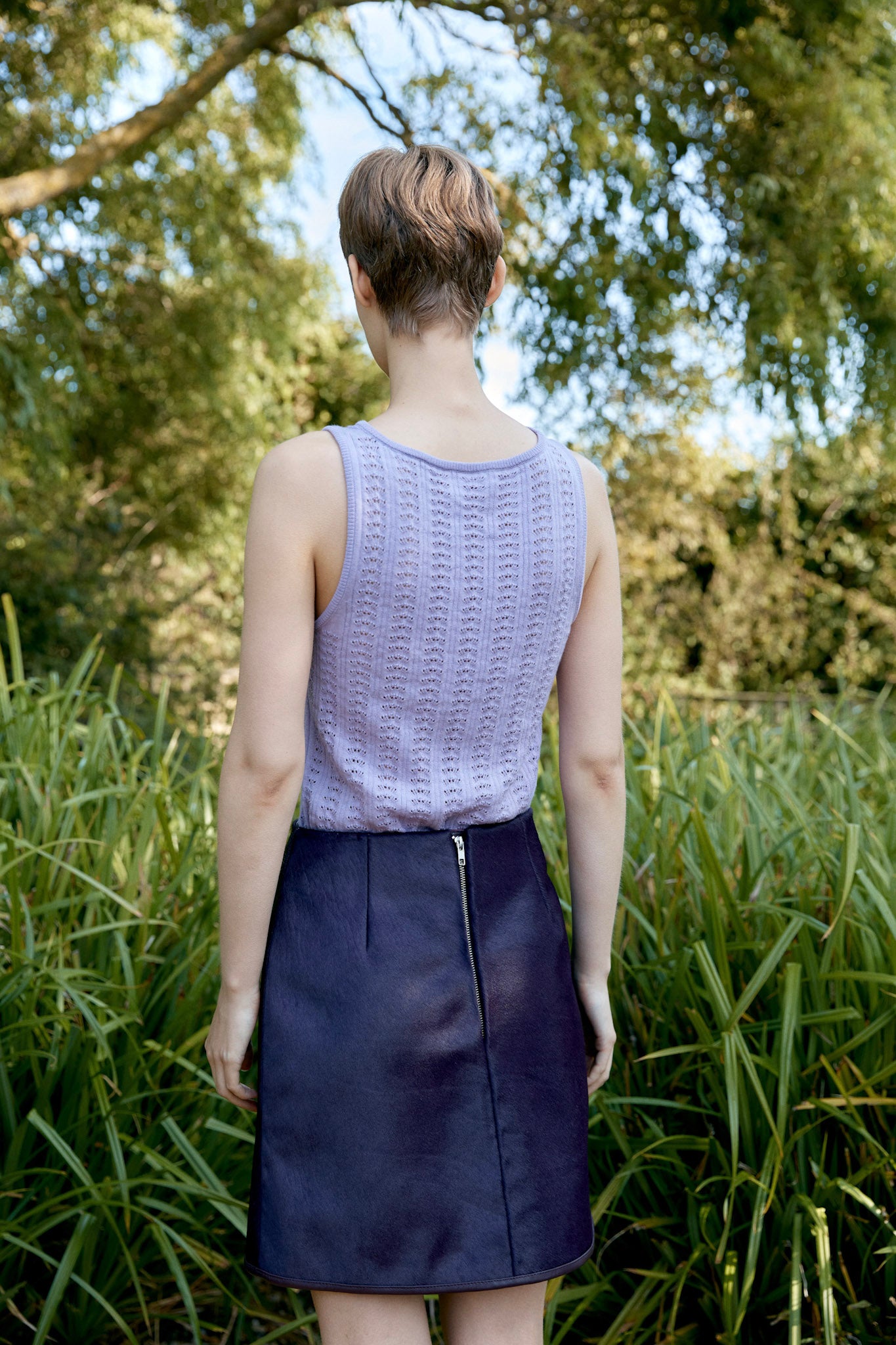 THE SADIE SKIRT IS CONSTRUCTED FROM A HAIR ON HIDE LEATHER THAT HAS UNDENIABLE TEXTURE AND A UNIQUE SHEEN. THE CLOSE-FITTING SILHOUETTE MAKES IT AN EASY CHOICE FROM DAY TO NIGHT. FINISHED WITH A PRACTICAL ZIPPER CLOSURE AT THE SIDE.