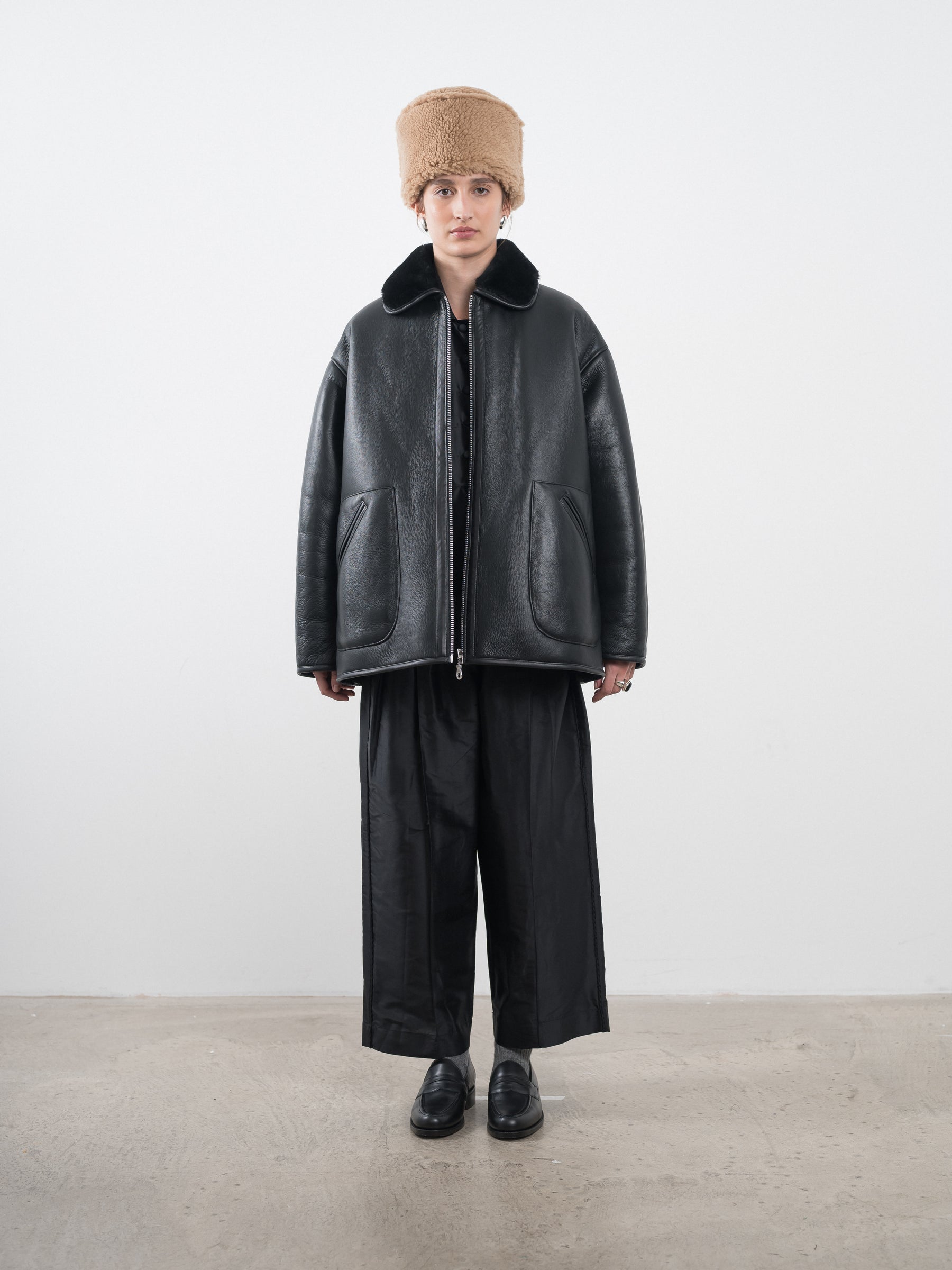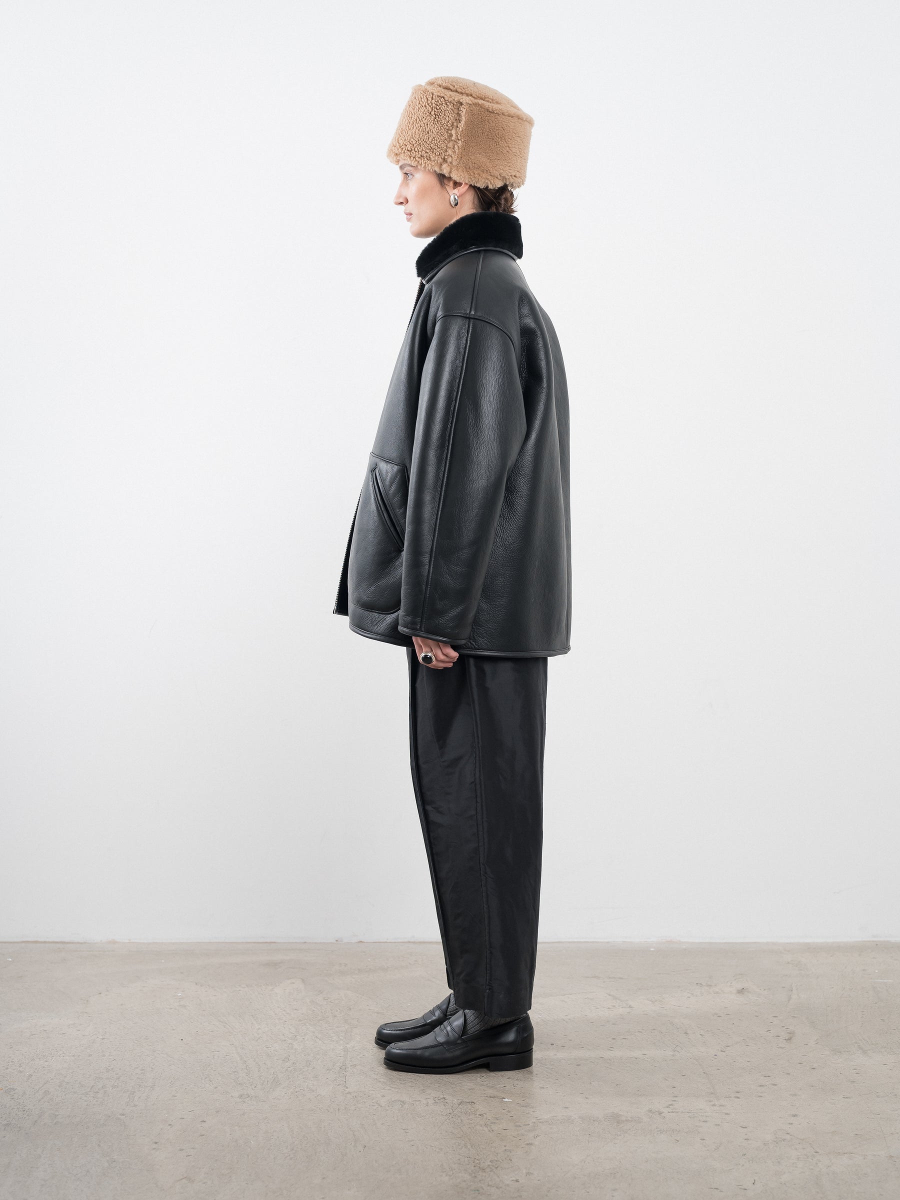 THE RONNY JACKET IS A CLASSIC AND HEAVYWEIGHT COAT FOR THE WINTER SEASON. CONSTRUCTED WITH A SMOOTH AND SUPPLE LEATHER EXTERIOR AND SOFT STRAIGHT HAIR INTERIOR, THE COAT DRAPES AROUND THE SHOULDERS. PRACTICAL DETAILS INCLUDE PATCH POCKETS WITH JET OPENINGS, MATCHING LEATHER NAPPA BINDING AND FINISHED WITH A STURDY ZIP CLOSURE.