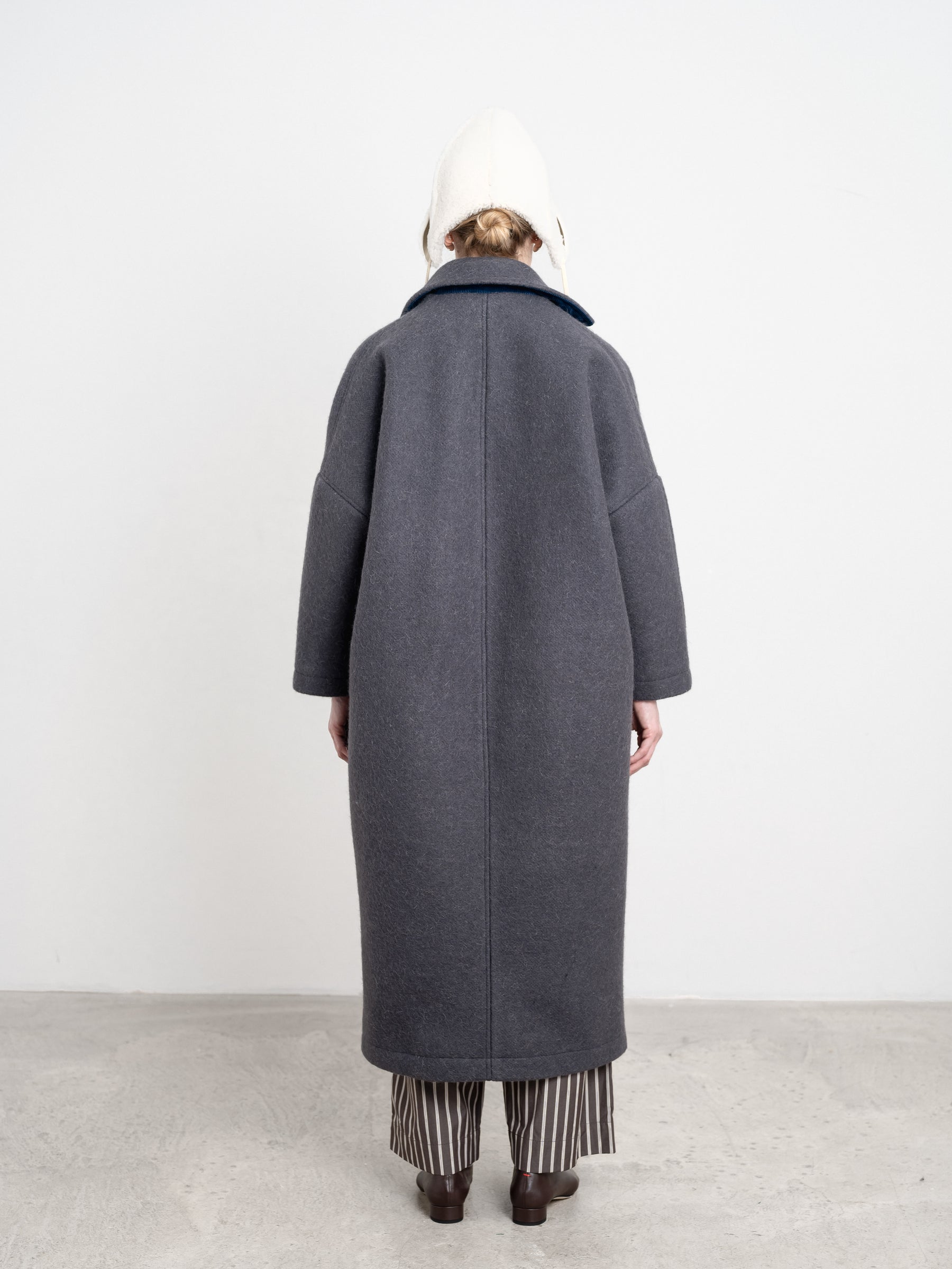 PORTUGUESE HAIRY WOOL LONGLINE FARO COAT SLATE