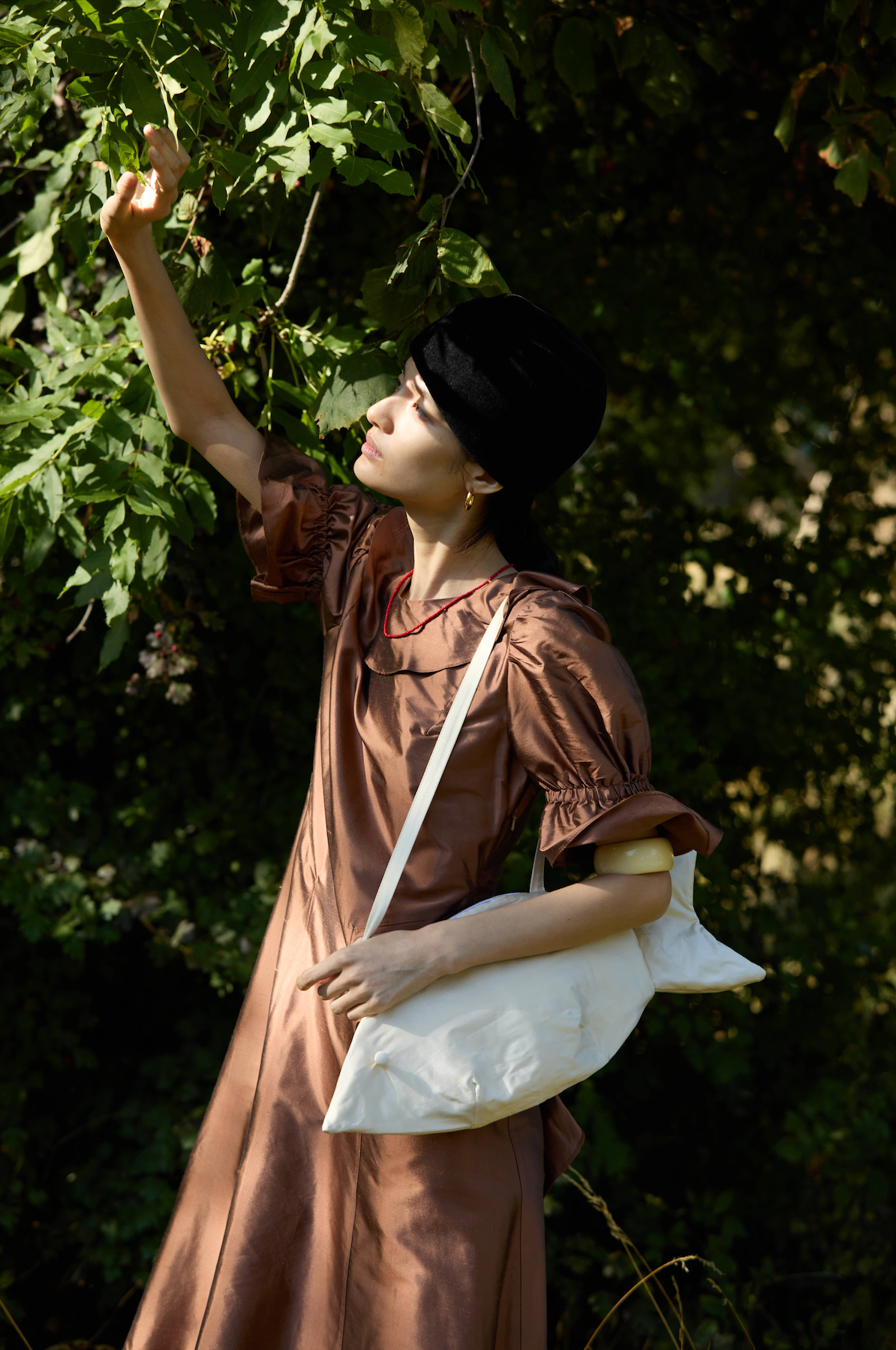 THE FISH BAG IS CRAFTED FROM 100% SILK DUPION WITH A COTTON LINING AND 100% WOOL WADDING. THIS BAG HAS A STRAP THAT CAN BE WORN CASUALLY ON THE SHOULDER OR AROUND THE BODY AND HAS A ZIP CLOSURE. PRE-ORDERS WILL CLOSE ON FRIDAY 10TH OCTOBER, BAGS WILL SHIP BEGINNING OF NOVEMBER.