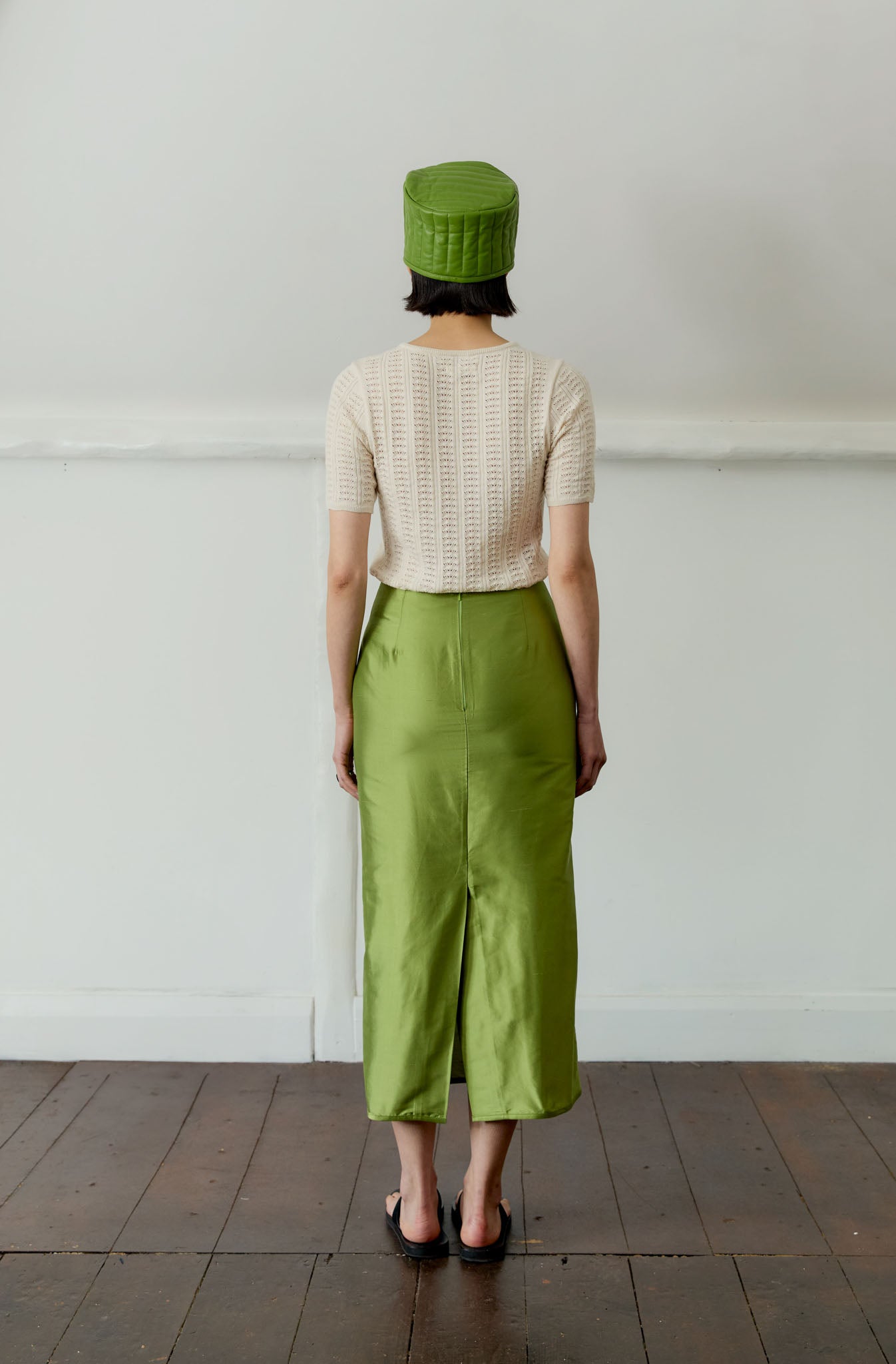 FALLING TO JUST ABOVE THE ANKLES AND CONSTRUCTED FROM APPLE GREEN SILK DUPION, THIS EASY-TO-WEAR AND STYLE PIECE IS FINISHED WITH A HEM SLIT AND CONCEALED ZIP CLOSURE FOR EASE OF WEAR.