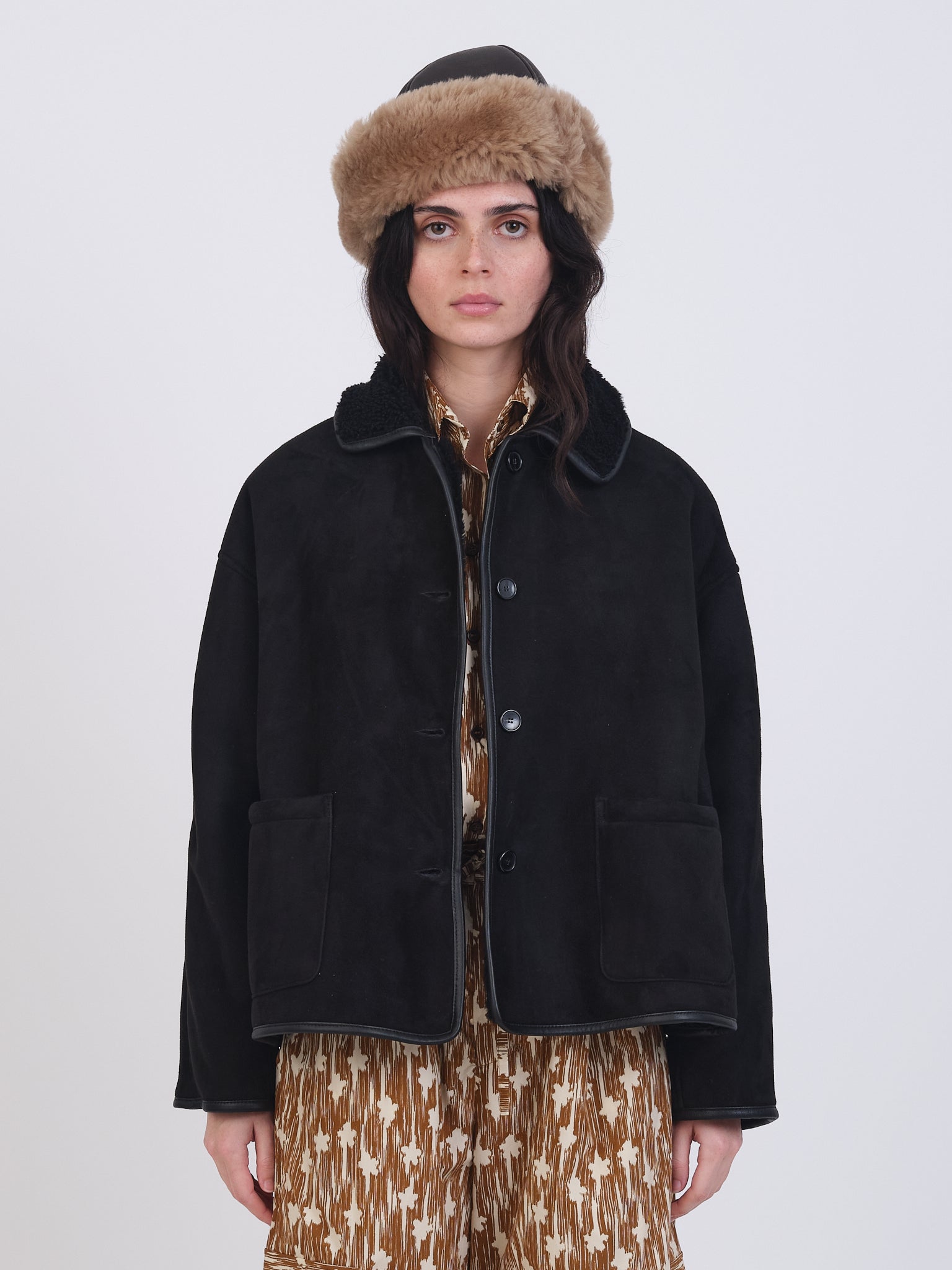SUEDE BACK CURLY HAIR AVIS JACKET BLACK