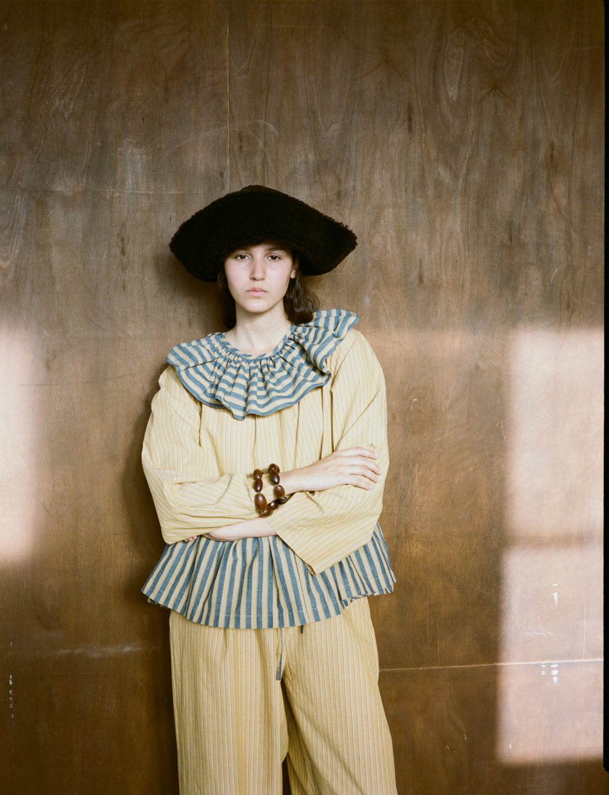 INTRODUCING THE PENNY HAT - CUT FROM SUEDE CURLY SHEEPSKIN. THIS IS A NEW SILHOUETTE, AN ADAPTATION OF THE SHEEPSKIN CAP.