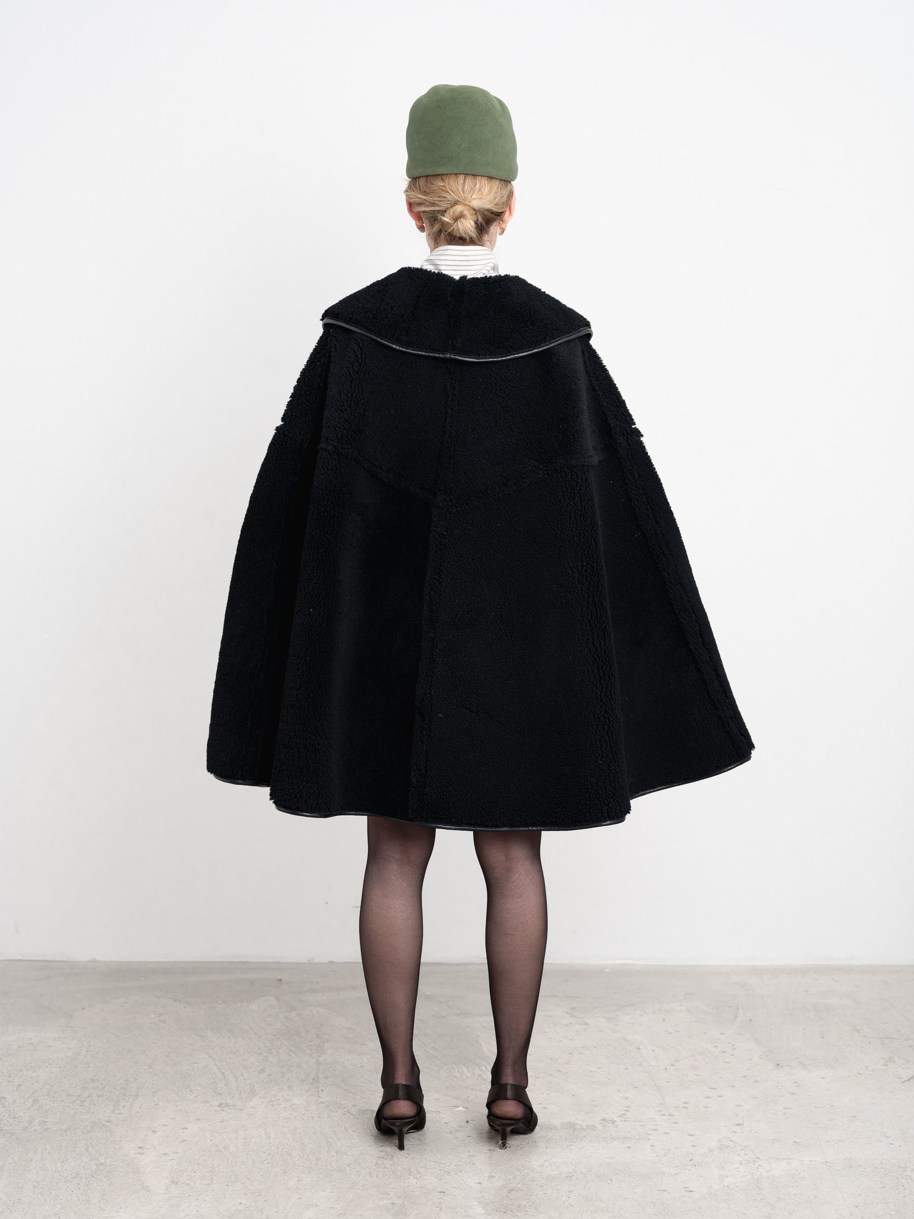 SUEDE BACK CURLY SHEEPSKIN ETTA CAPE BLACK