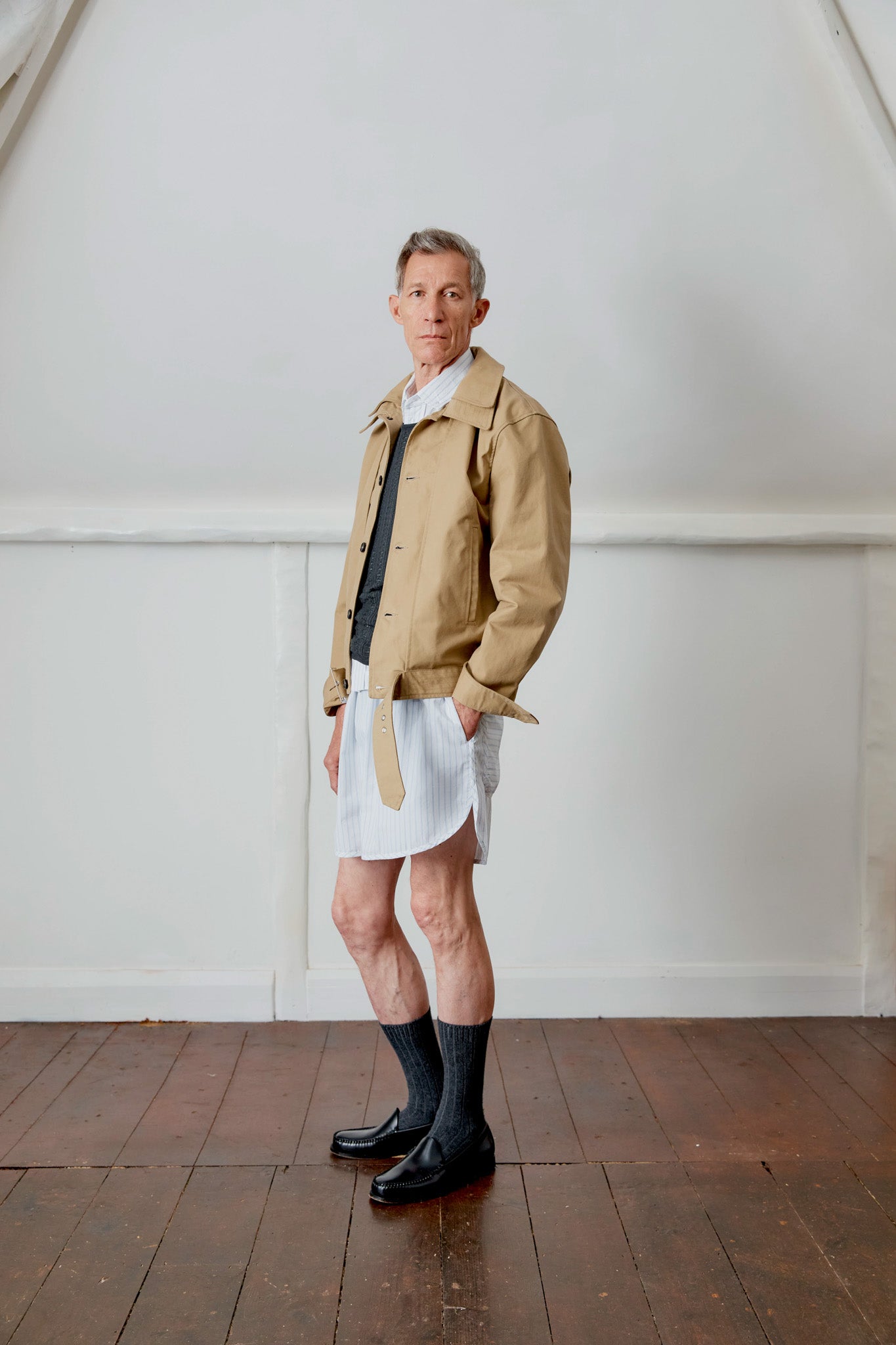 THE RAFE JACKET, NEW FOR SS26, IS AN OVERSIZED, BOXY BUTTON-FRONT JACKET. CUT FROM A BRITISH COTTON GABARDINE, KNOWN FOR ITS DURABLE PROPERTIES. IT FEATURES A DOUBLE LAYERED COLLAR, VERTICAL WELT POCKETS, AND A HORN-BUTTON PLACKET. BUTTONED CUFFS AND A REMOVABLE BELT CREATE GENEROUS PROPORTIONS THROUGH THE BODY TO PRODUCE A HIGH VOLUME SILHOUETTE.