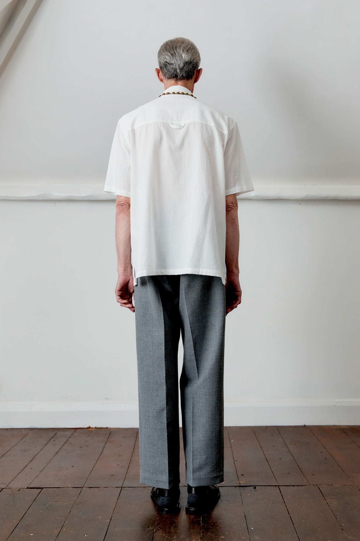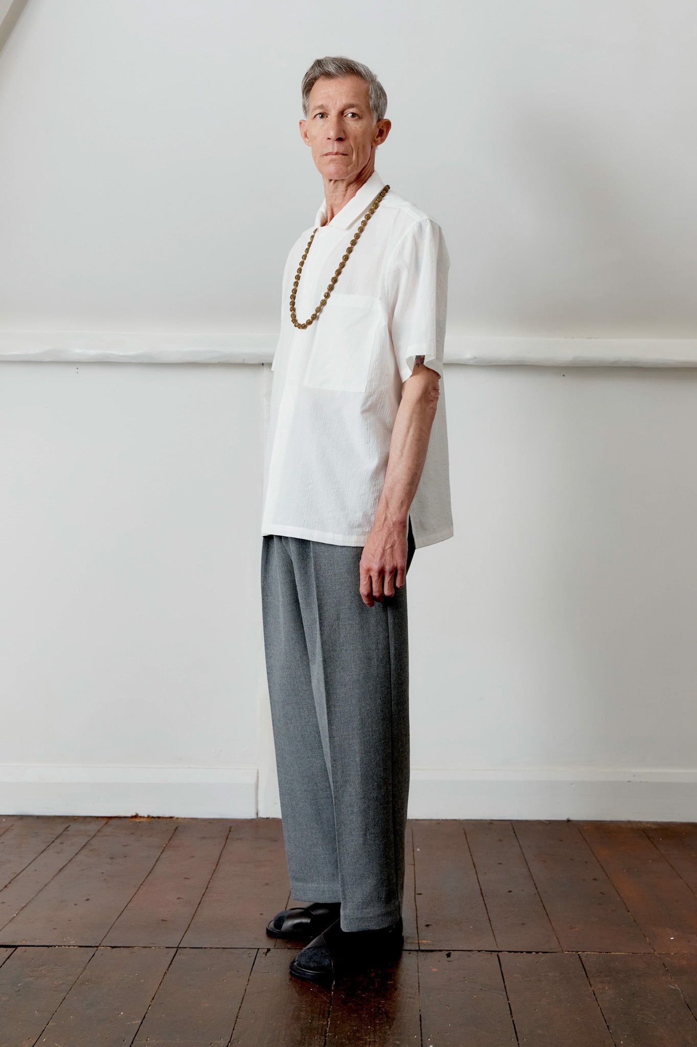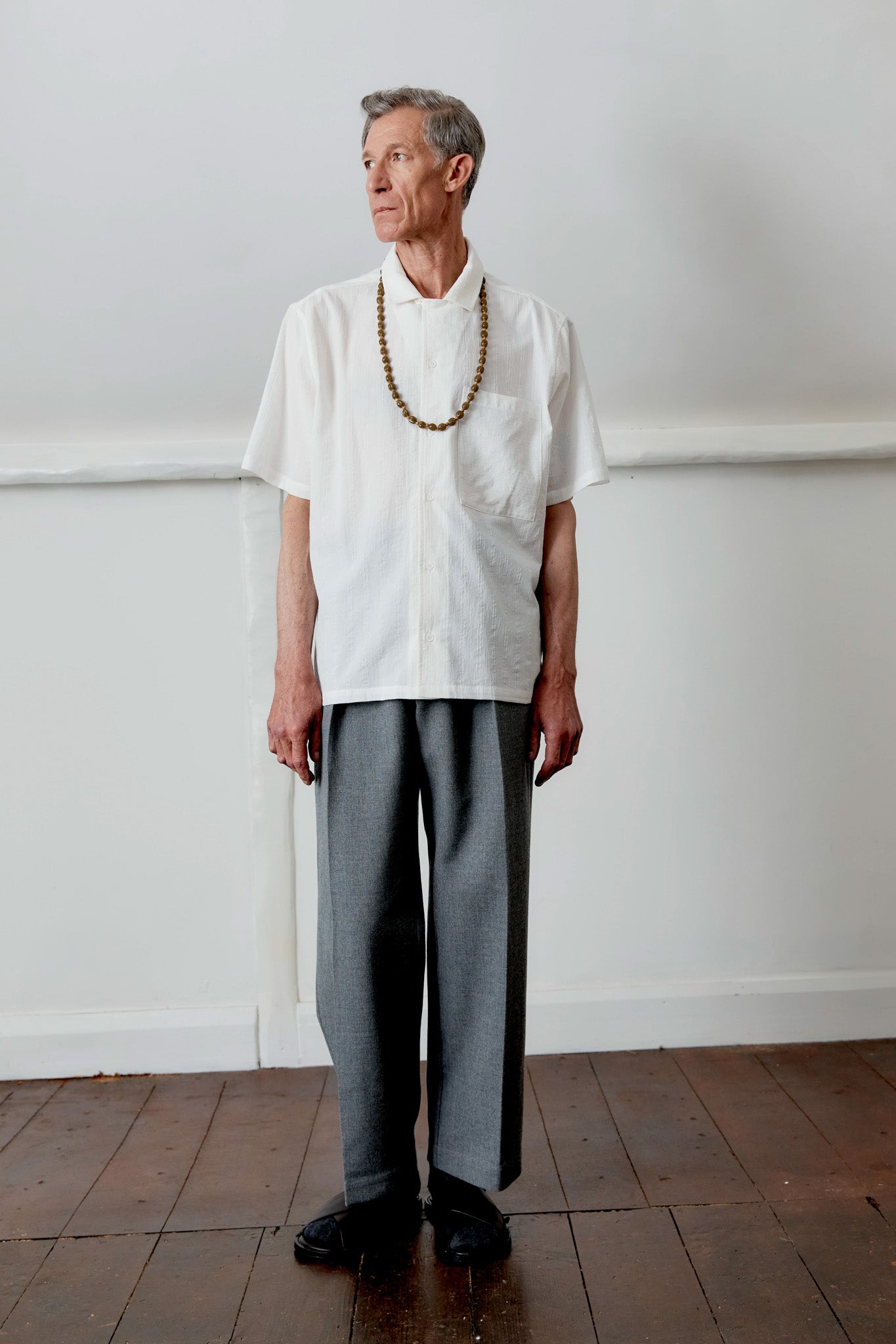 THE AUGUST SHIRT IS CUT TO A RELAXED AND BOXY SILHOUETTE, MAKING IT PERFECT FOR EASY STYLING. FEATURING A POINTED SPREAD COLLAR, PEARLESCENT BUTTONS, AND A BUTTON LOOP ON THE LAPEL ALLOWING FULL CLOSURE. FINISHED WITH A PATCH POCKET AT THE CHEST AND BACK YOKE HANGING LOOP.