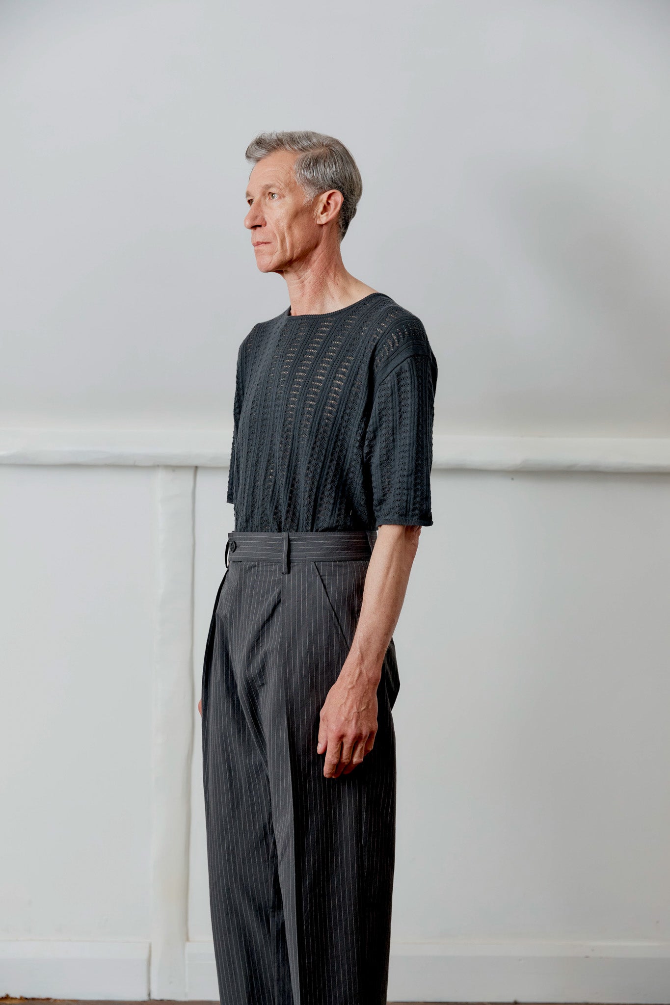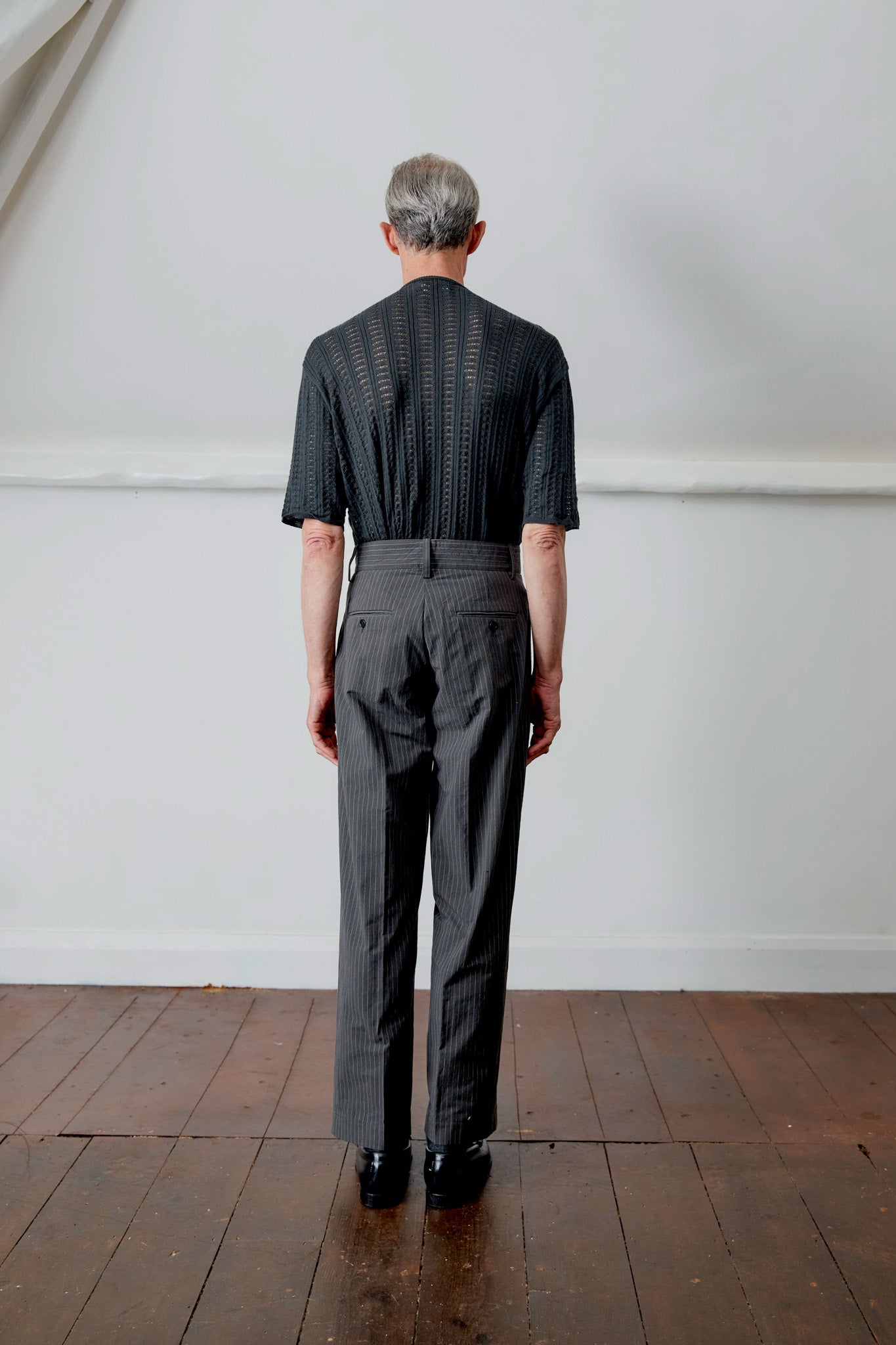 JAPANESE COTTON LINEN SILAS TROUSER SLATE STRIPE