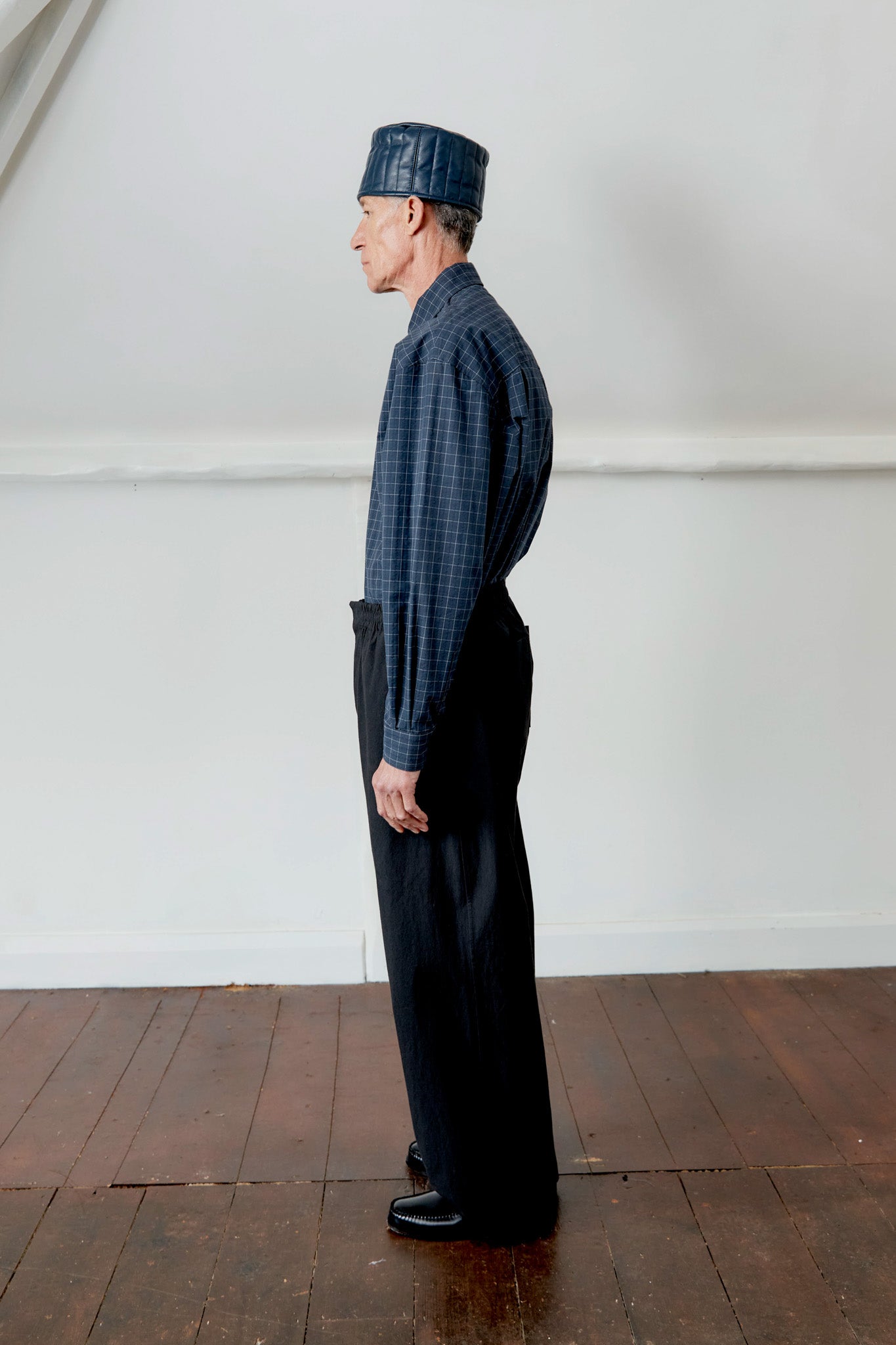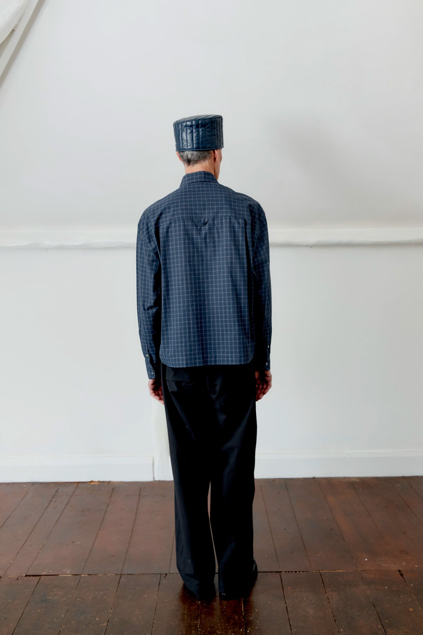 THE DENNIS SHIRT IS A VERSATILE ADDITION TO ANY WARDROBE. DESIGNED TO HAVE A BOXY, RELAXED FIT WITH THE PERFECTLY CROPPED LENGTH TO PAIR WITH ALL CAWLEY TROUSERS. CUT IN A NAVY CHECK JAPANESE COTTON SEERSUCKER, THE STRAIGHT HEM ADDS A CONTEMPORARY TOUCH, WHILST CLASSIC SHIRT DETAILS FINISH OFF THE PIECE.