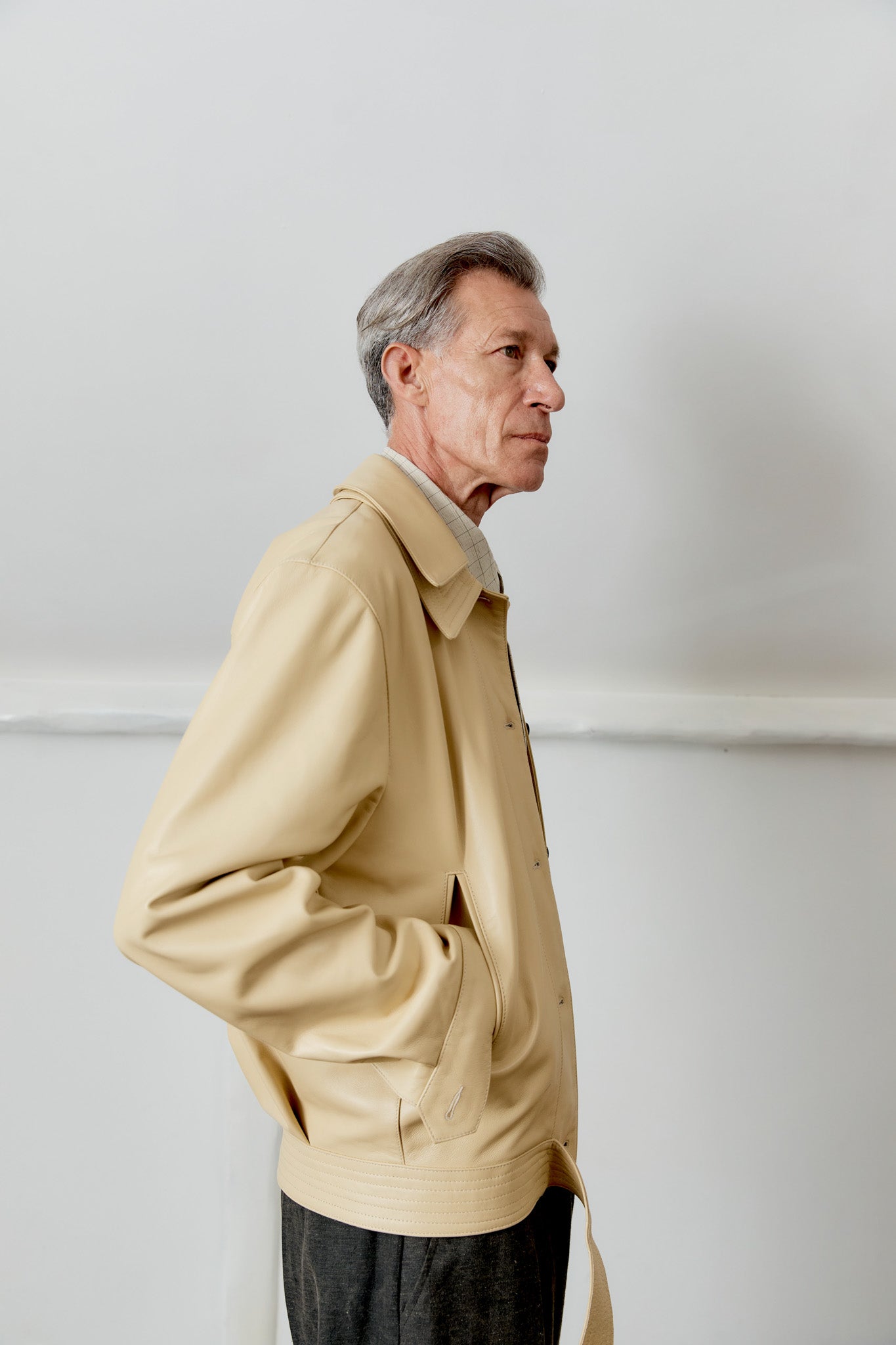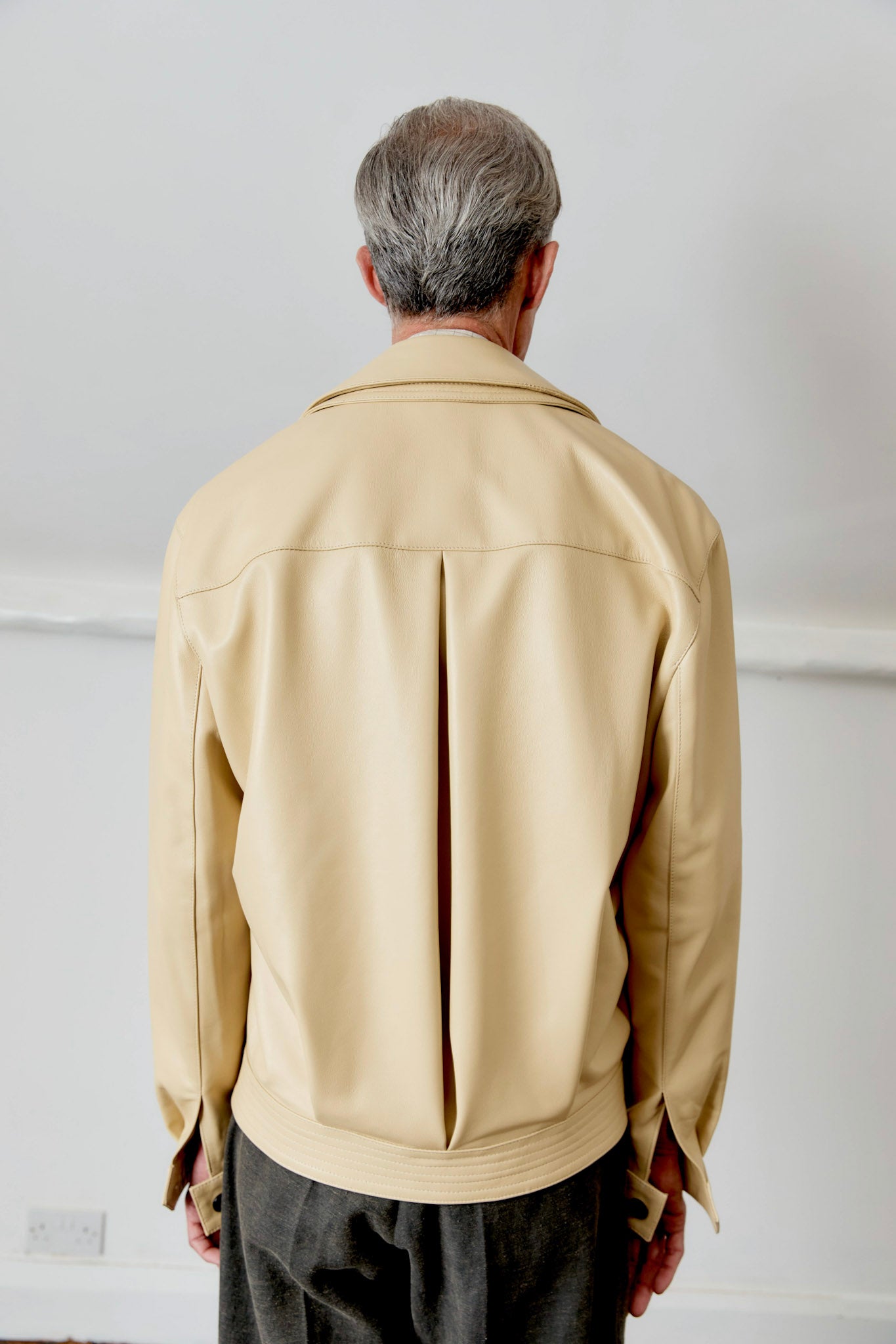 THE RAFE JACKET, NEW FOR SPRING SUMMER, IS AN OVERSIZED, BOXY BUTTON-FRONT JACKET. CUT FROM A BUTTERY SOFT NAPPA LEATHER, IT FEATURES A DOUBLE LAYERED COLLAR, VERTICAL WELT POCKETS, AND A HORN-BUTTON PLACKET. BUTTONED CUFFS AND A FASTENED BELT CREATE GENEROUS PROPORTIONS THROUGH THE BODY TO PRODUCE A HIGH VOLUME SILHOUETTE.