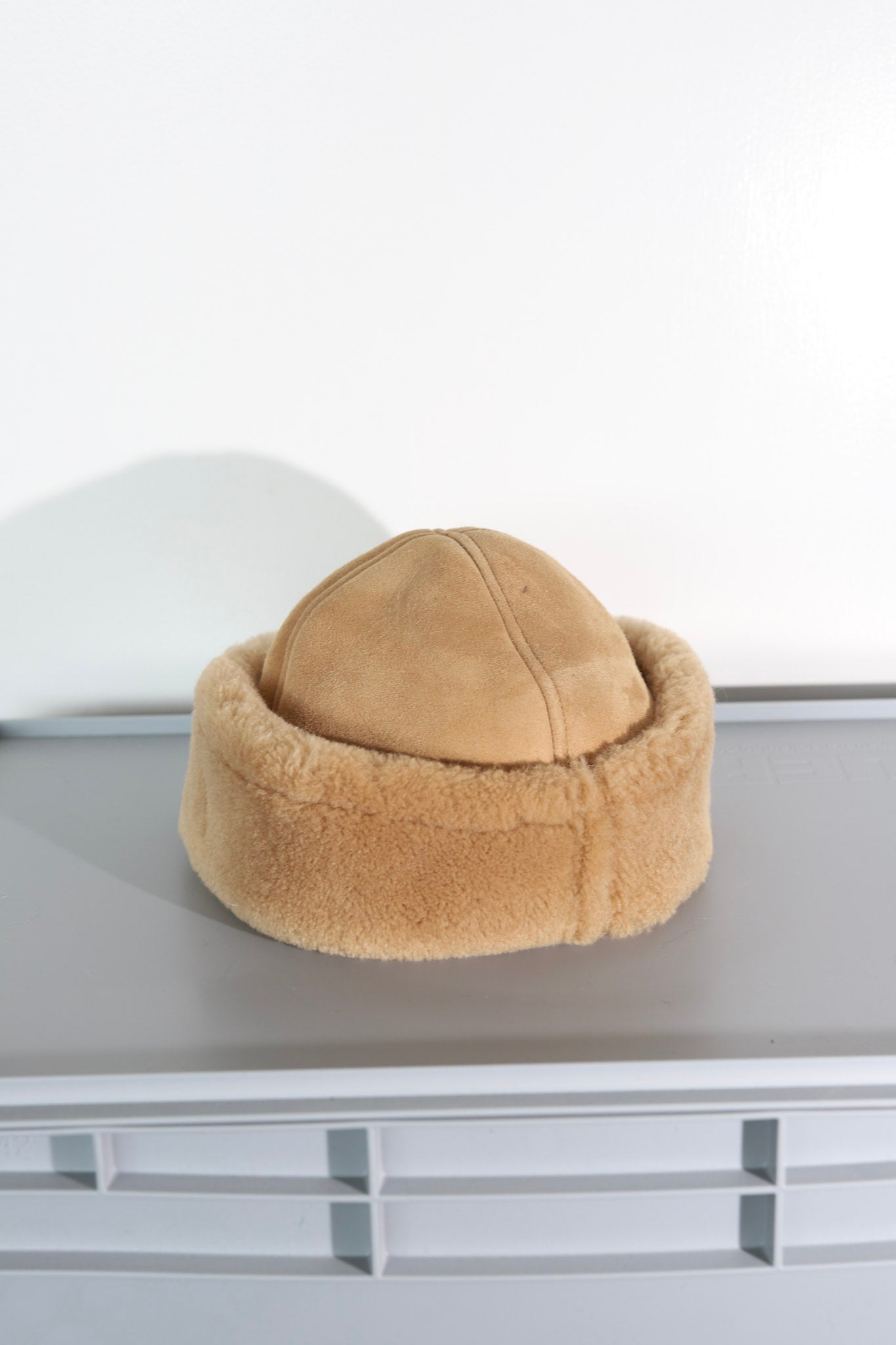 SUEDE BACK CURLY HAIR SHEEPSKIN CAP TAN