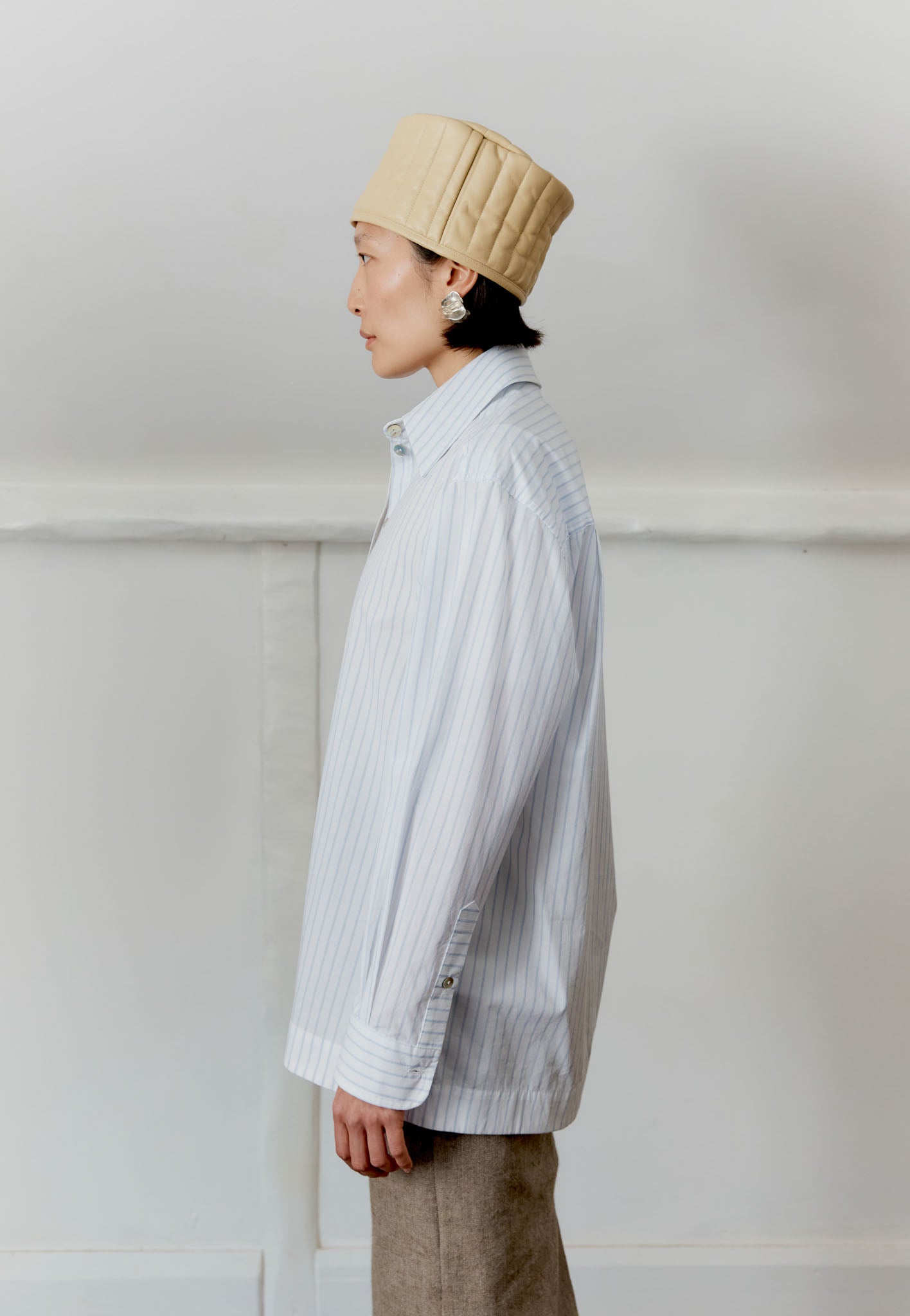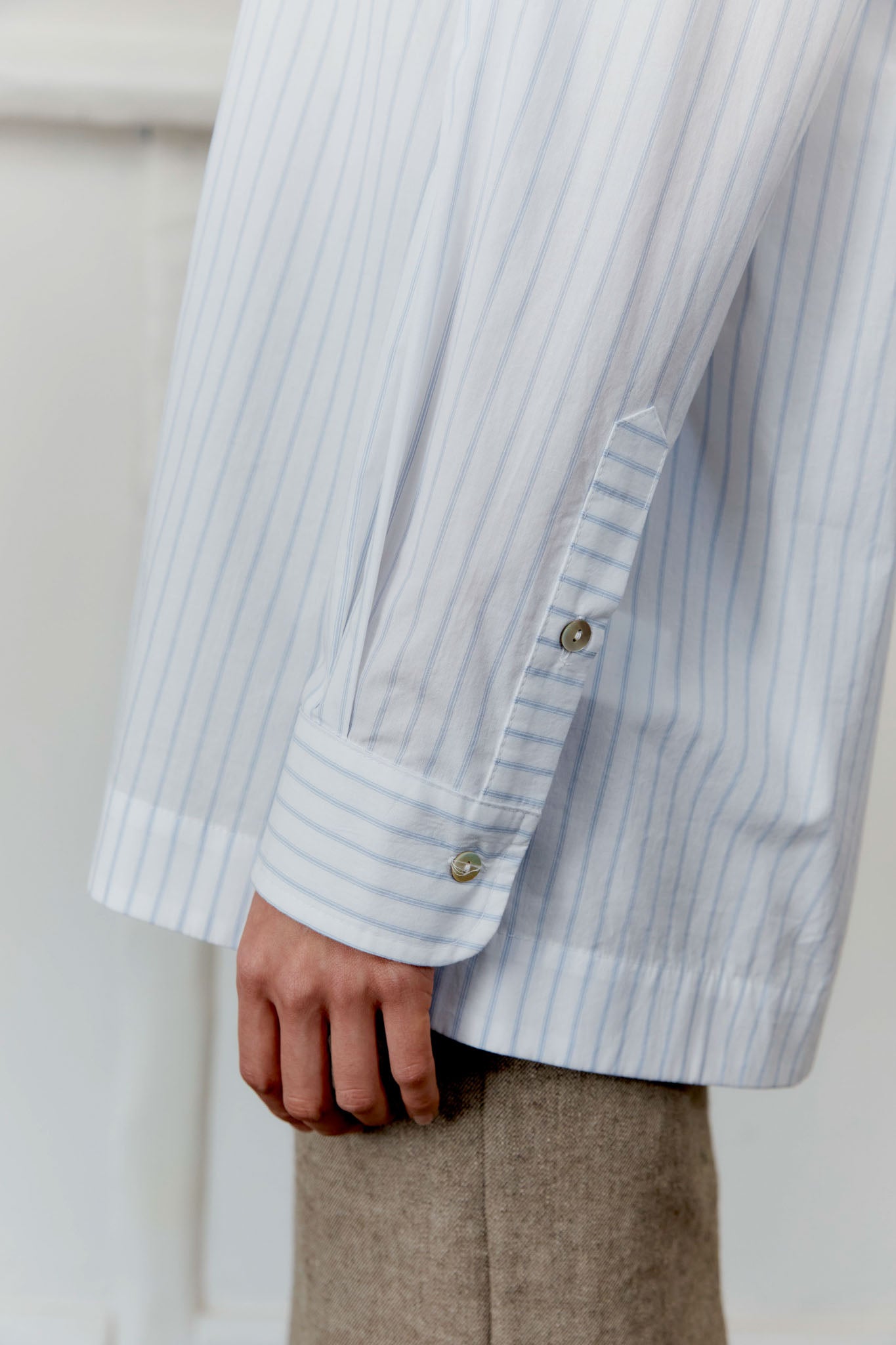JAPANESE ORGANIC COTTON JUNE SHIRT SKY/WHITE STRIPE